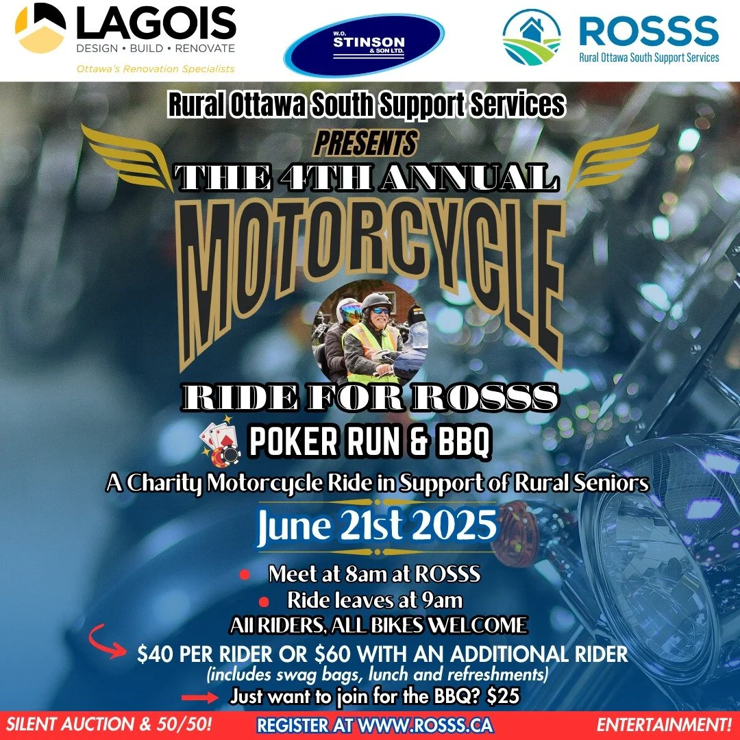4th Annual Ride for ROSSS Poker Run & BBQ Saturday, June 21, 2025 8:00âŻa.m. 2:00âŻp.m. Google Calendar ICS