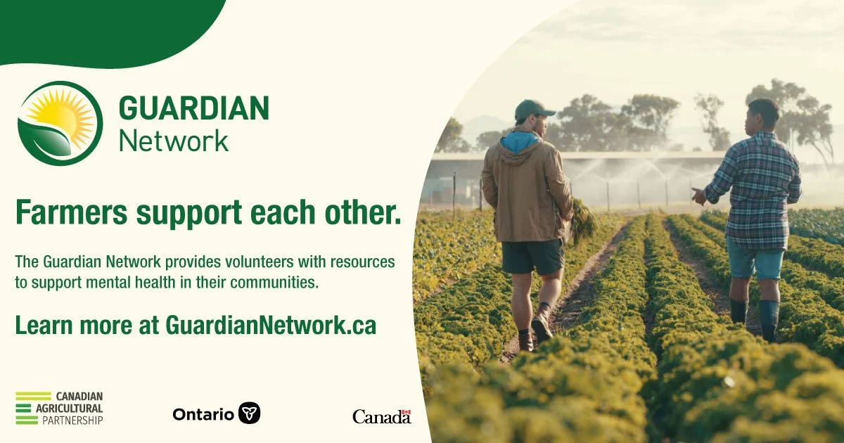 Agriculture Wellness Ontario is offering its free Guardian Network program, a suicide prevention workshop that trains volunteers to identify signs of mental distress and connect farmers with mental health resources.