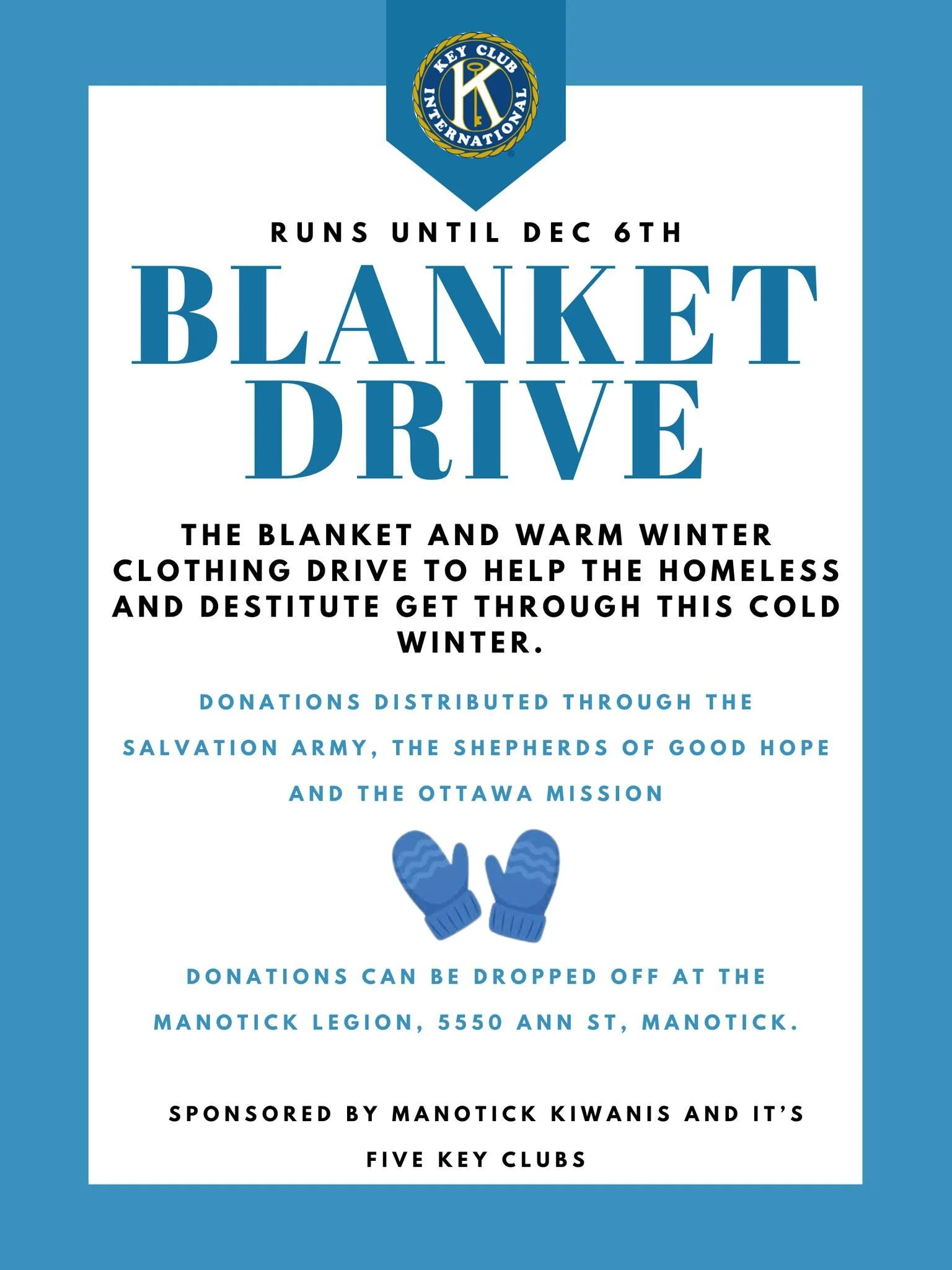 Help those in need get through the cold winter by donating to the Blanket and Warm Winter Clothing Drive. Sponsored by Manotick Kiwanis and its Five Key Clubs, this initiative collects essential items for those in need.