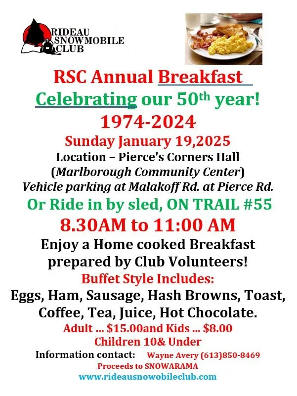 Every one is welcome to join the RSC members for breakfast with all proceeds going to Snowarama!