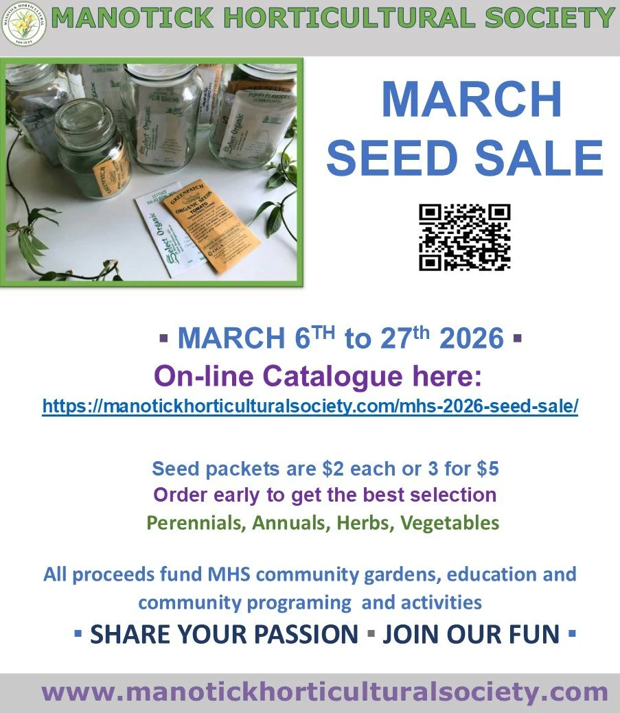The Manotick Horticultural Society is hosting its annual March Seed Sale, offering a great variety of perennials, annuals, herbs, and vegetables. By purchasing your seeds through this sale, you are directly supporting the community, as all proceeds fund local gardens, education, and community programming. It is a wonderful way to prepare for the gardening season while helping to keep the village green.
