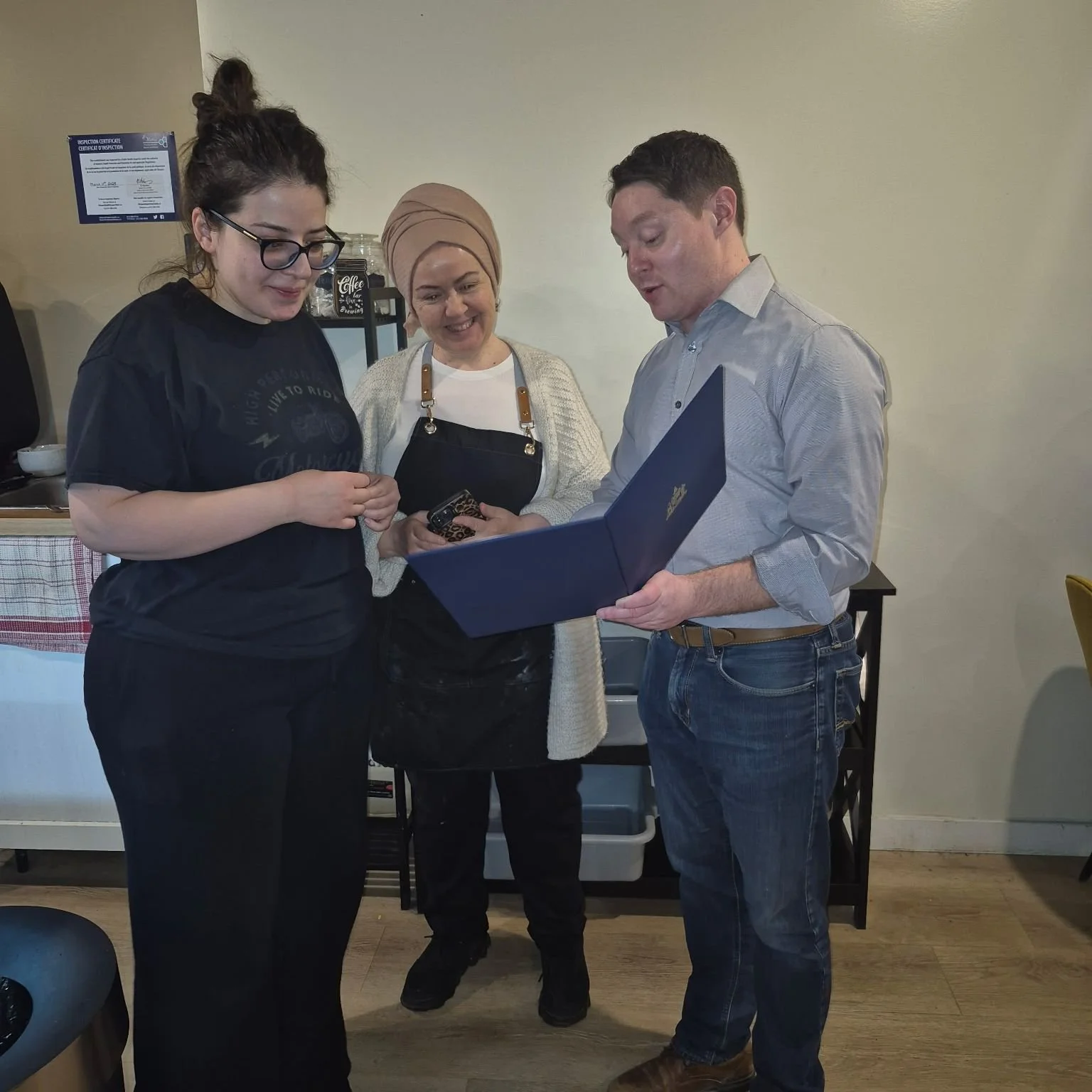 While attending the Coffee with a Cop event on April 16, I was happy to present a formal congratulatory certificate to Ms. Yaren Celik, owner of Café Harmony in Richmond. It is great to officially welcome this new business to the village on behalf of the Mayor and the City. Supporting our local small businesses is a priority, and I wish Yaren and the team at Café Harmony much success.